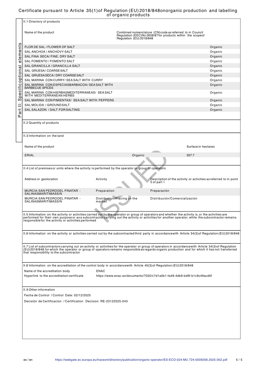 Con todo esto, Salinera Española demuestra su compromiso en suministrar productos que cumplen los más altos niveles de seguridad alimentaria, calidad y legalidad además de asegurar la autenticidad de todos los artículos.